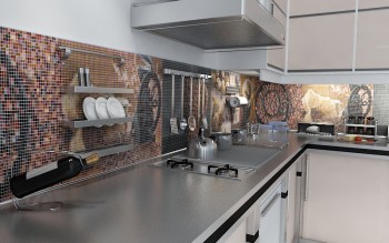 А вот что касаемо камня, то он бывает разный. Если это мрамор или натуральный камень, то для "брутальной" кухни он очень даже подойдет. А если же он искусственный, то для кухни он будет не практичен, так как мыть его будет проблематично.