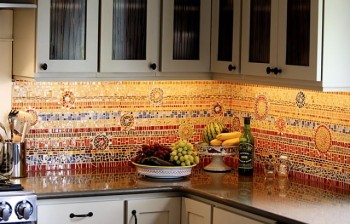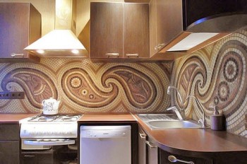 Мозаика, это керамика, как плитка, но в более интересной интерпритации и сейчас она очень оптимальный вариант по всем позициям. Также стеклянный "фартук" сейчас в моде и соответствует всем требованиям предъявляемым к кухне.